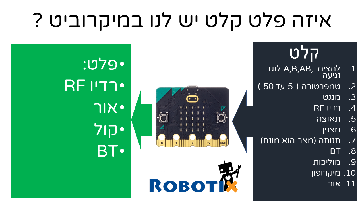| סקירת כל הפקודות שיש בסביבת התכנות של מיקרוביט עם בלוקים - סרטון 16 דקות | https://youtu.be/QrST3PxL5b4 |